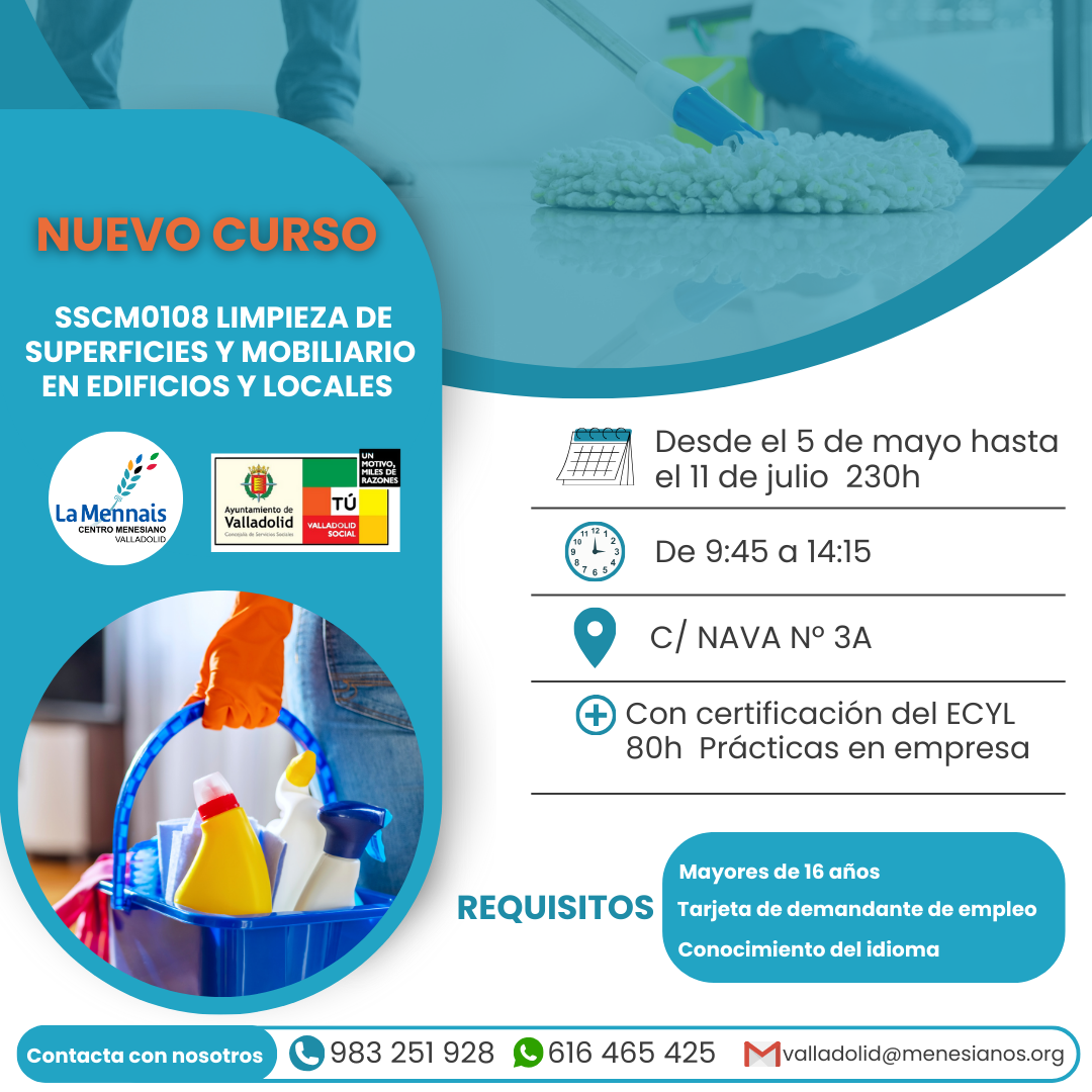 Leer más…Limpieza de superficies y mobiliario en edificios y locales (SSCM0108)