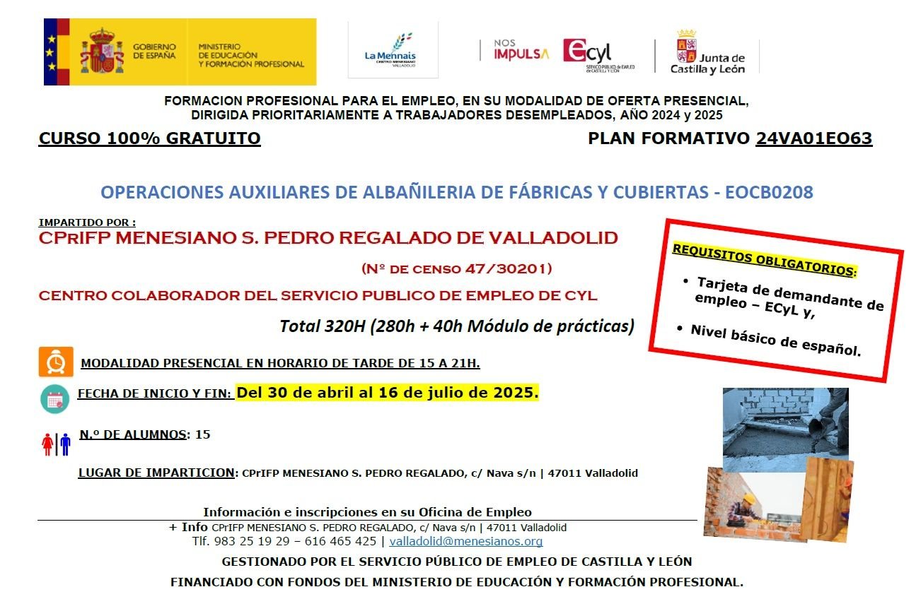 CPrIFP MENESIANO S. PEDRO REGALADO DE VALLADOLID (Nº de censo 47/30201) CENTRO COLABORADOR DEL SERVICIO PUBLICO DE EMPLEO DE CYL